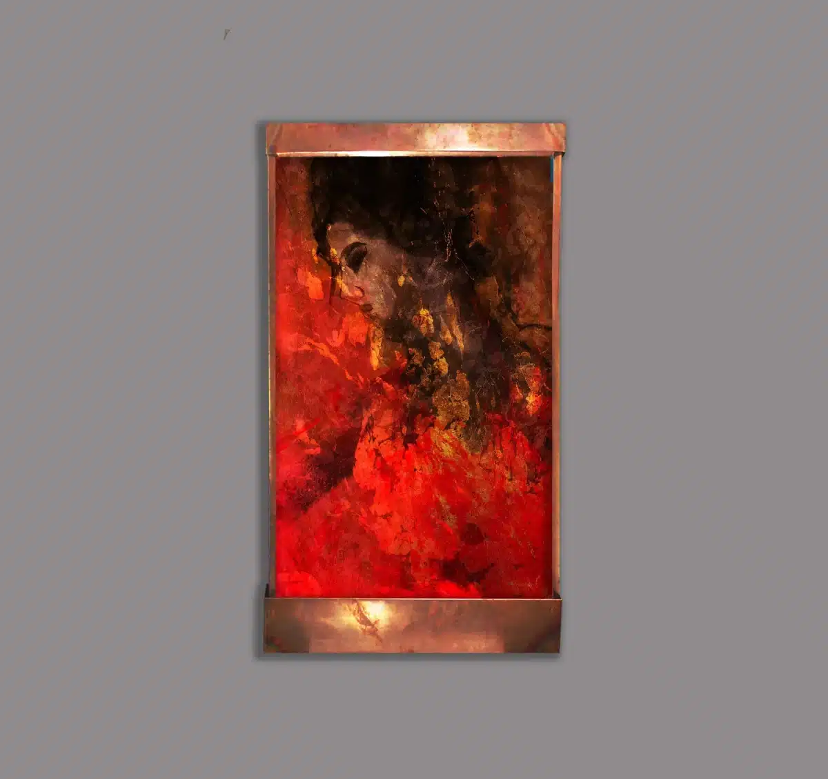 Volantes is the name of the ruffles on a flamenco dancer’s dress. This wall fountain captures the passion and the beauty and excitement of a flamenco dancer. This fountain can be used as an indoor fountain or an outdoor fountain. It is made by hand, and is made one at a time for you. Water runs down the face of it. It is 48″ tall, 28″ wide, and 6″ deep. A light hood can be purchased separately for it. It comes with everything you need to hand and run it. We can make it in custom sizes for you as well.